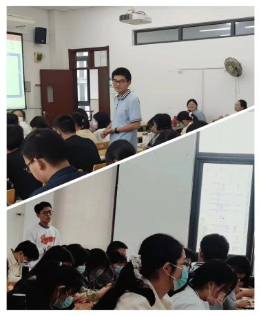 本次经验分享会于10月1日下午在线下展开,由丁朗若和黄柯文同学担任主持人,高超堃、曾梓栩、魏东来三位大三同学依次与大一同学们分享经验。