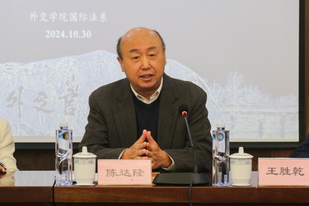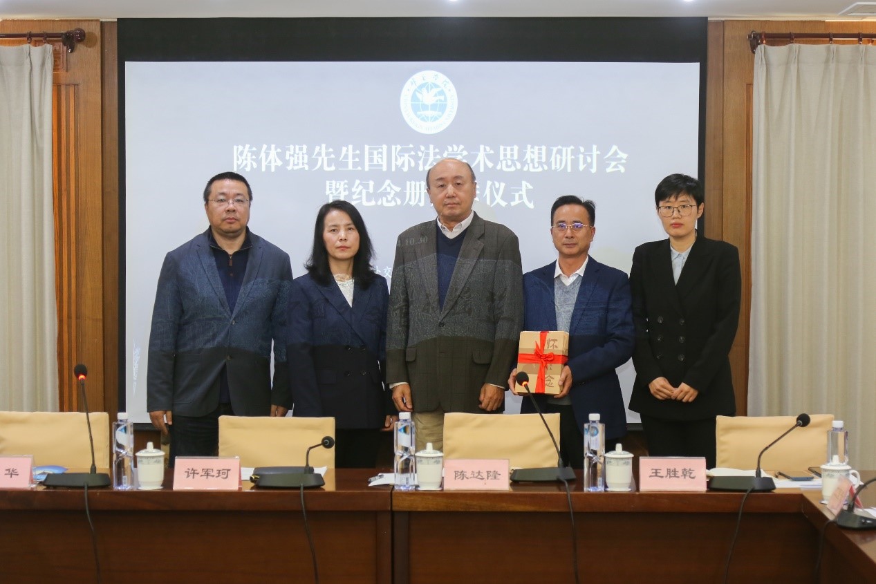 为深切缅怀陈体强先生在国际法研究、国际法教育和国际法实践等领域作出的突出贡献,弘扬其学术思想、传承其学术精神,2024年10月30日,外交学院国际法系在外交学院展览馆路校区成功举办“陈体强先生国际法学术思想研讨会”。本次研讨会分为陈体强先生国际法学术思想研讨会和陈体强先生纪念册赠送仪式两个环节。来自外交部条法司、北京大学、浙江大学、吉林大学、上海交通大学、欧洲大学学院、外交学院等知名院校、研究机构和实务部门的专家学者以线上线下相结合的形式参与本次研讨会。外交学院国际法系主任张华,国际法系党总支书记王胜乾,国际法系副主任王佳、迟喜文,国际法系师生等参加此次研讨会和纪念册赠送仪式。外交学院副院长许军珂教授出席并致辞。