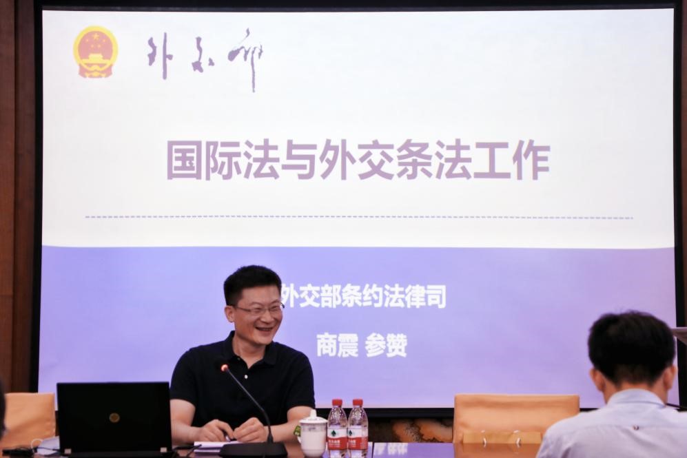 开班仪式后,外交部条约法律司商震参赞为学员进行了“国际法与外交条法工作”主题讲座。讲座从为什么要学习国际法、怎样学习国际法和外交部条法司职责与实务工作三个方面展开。商震参赞由浅入深地介绍了国际法理论与实践,并回答了同学们提出的一系列关于国际法实践、国际法学习和职业发展方面的问题。讲座结束后,现就职于外交部条法司的外交学院2022届硕士毕业生李朗润也向同学们分享在条法司工作的经验与心得。