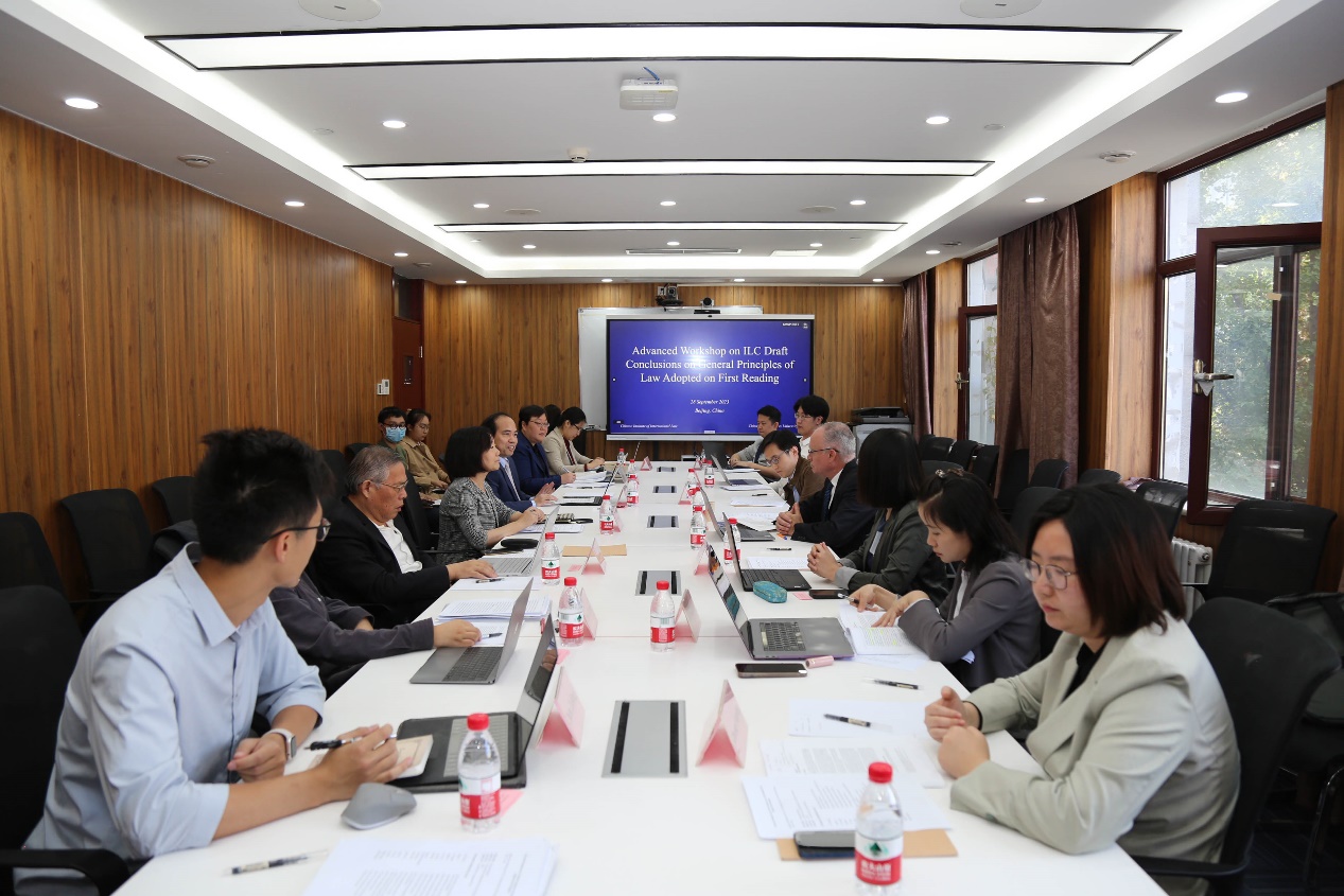 2023年9月28日,外交学院中国国际法研究院和国际法系举办了研读联合国国际法委员会一读通过的关于“一般法律原则”专题结论草案的高级研讨会。研讨会由外交学院副院长许军珂教授致欢迎词,易显河教授主持。本次研讨会邀请到联合国国际法委员会第一副主席和“一般法律原则”专题的特别报告员马塞洛·巴斯克斯-贝穆德斯大使(Marcelo Vázquez-Bermúdez),参会人员还包括京内外对“一般法律原则”专题有认真研究并且英语水平高的专家、学者,如张乃根,丁如,张鹿苹,何田田,姜斌,刘洋,宋岩,罗粒仁,邵璇,潘凯军,毛晓,解阳。