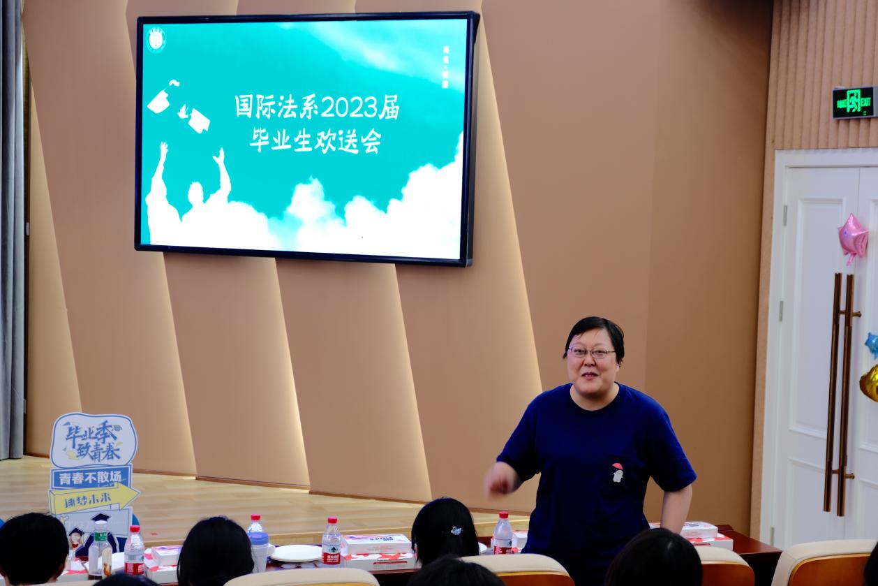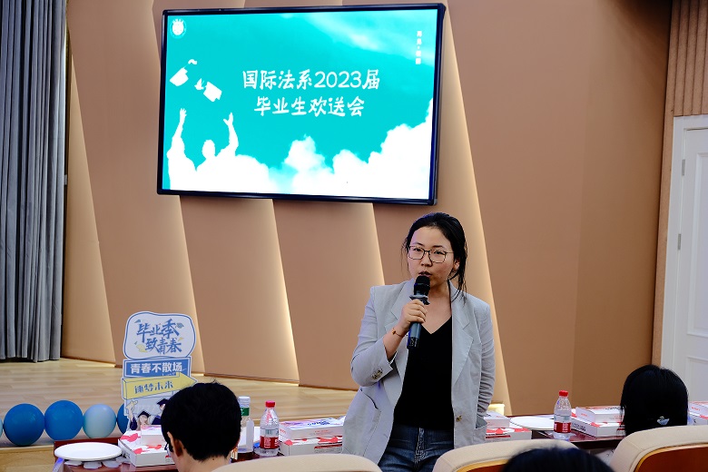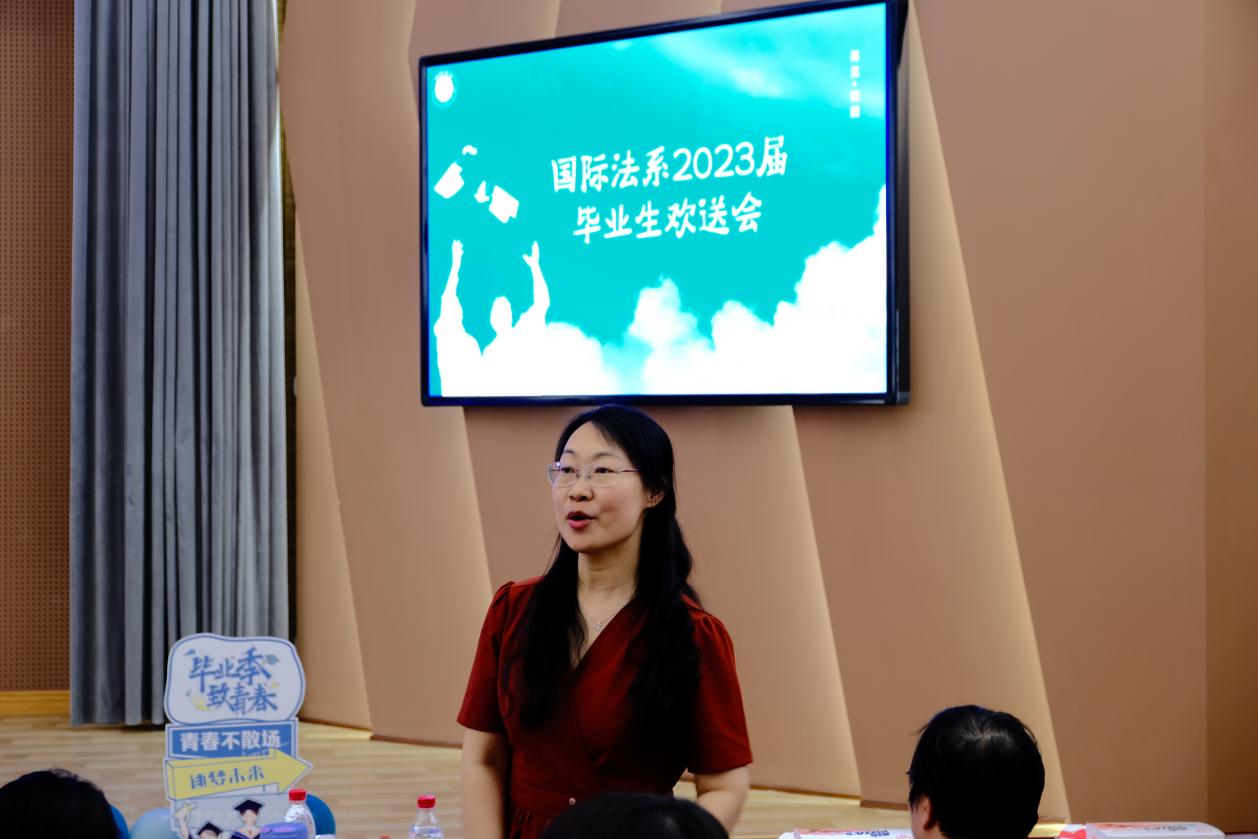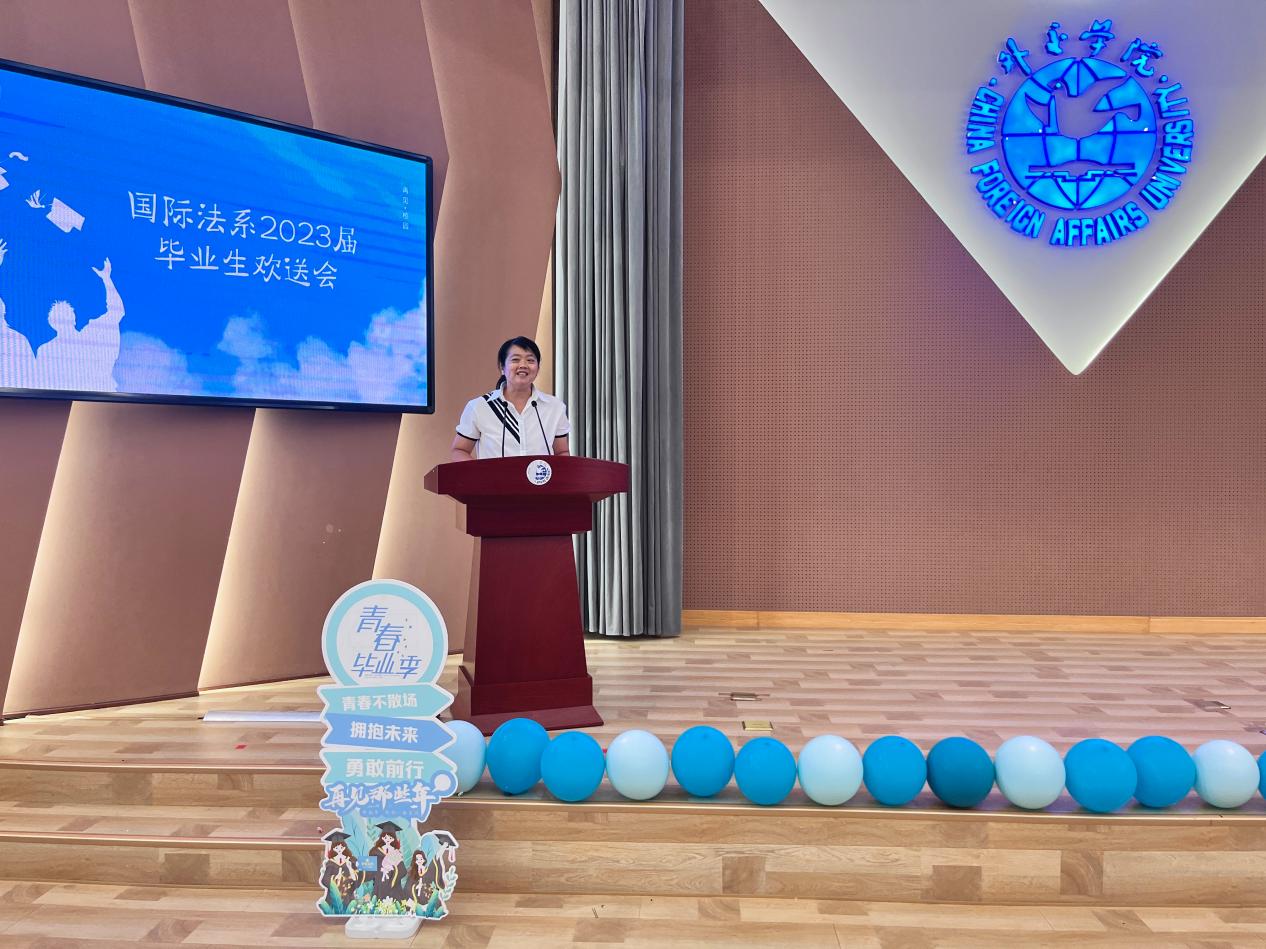 2023年6月28日下午,我系在沙河校区图书馆报告厅举办了2023届毕业生欢送会。活动由我系教学副主任张华老师主持,行政副主任迟喜文老师、王佳老师、张春燕老师、潘皞宇老师、焦阳老师、杨赟老师、宋岩老师、吴园林老师、陈南睿老师、谢梦老师等教师代表十余人、2023届国际法系毕业生和38名学生家长参加了本次欢送会。