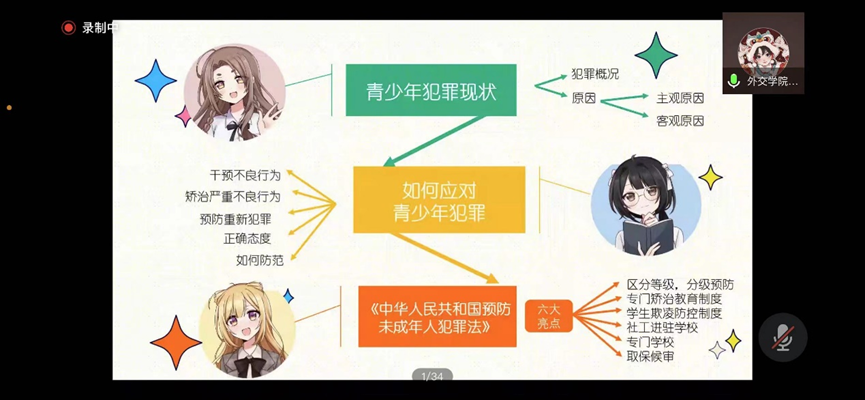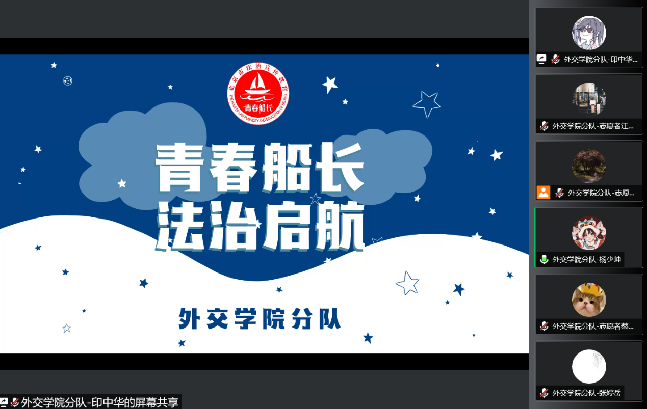 2022年5月11日,外交学院法律援助中心三位成员——印中华、张婷岳和杨少坤,为昌平区大东流中学和上苑中学的同学们进行了一场线上普法讲座。