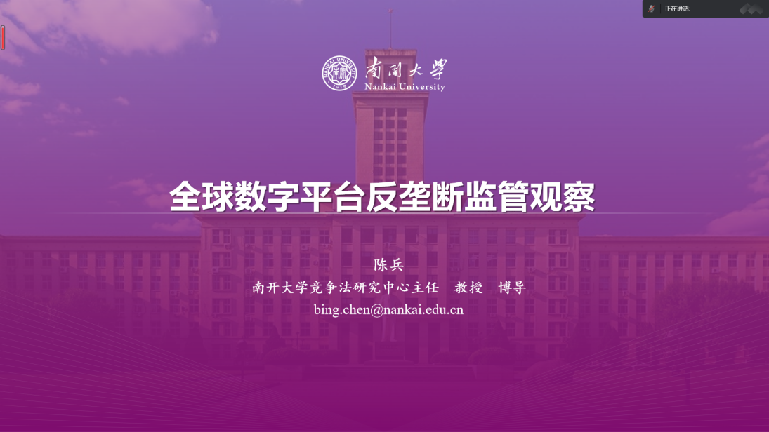 2022年6月16日晚,国际法系举办了以“全球数字平台反垄断监管观察”为主题的网上讲座。本次讲座由南开大学竞争法研究中心的陈兵教授主讲,国际法系张春燕副教授评议,国际法系2019级涉外卓越法律人才实验班的全体同学参与学习。