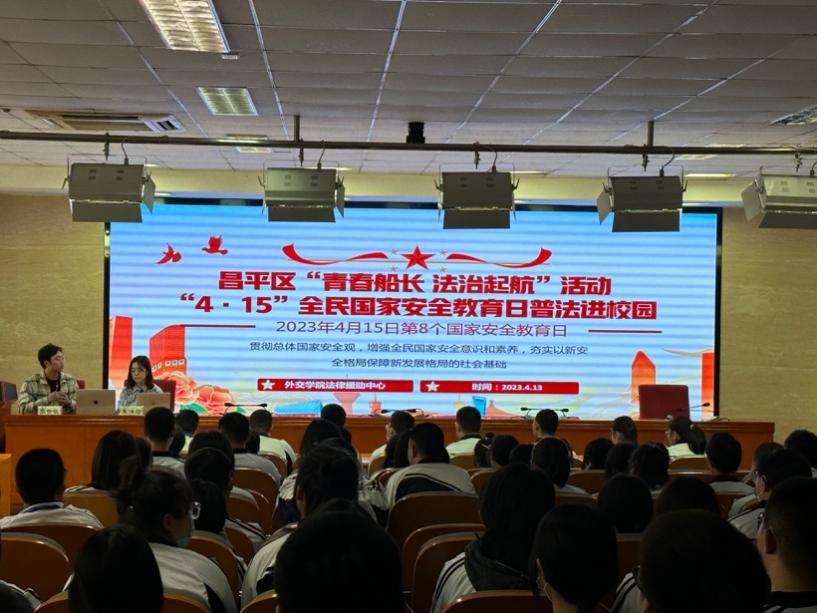 在第八个全民国家安全教育日到来之际,2023年4月13日,外交学院法律援助中心张世钦、朱阳熠两名同学在杨少坤、陈俊宇、马羽暄、胡心怡四位学长学姐的指导与带领下,前往昌平职业学校开展全民国家安全教育日线下普法活动。