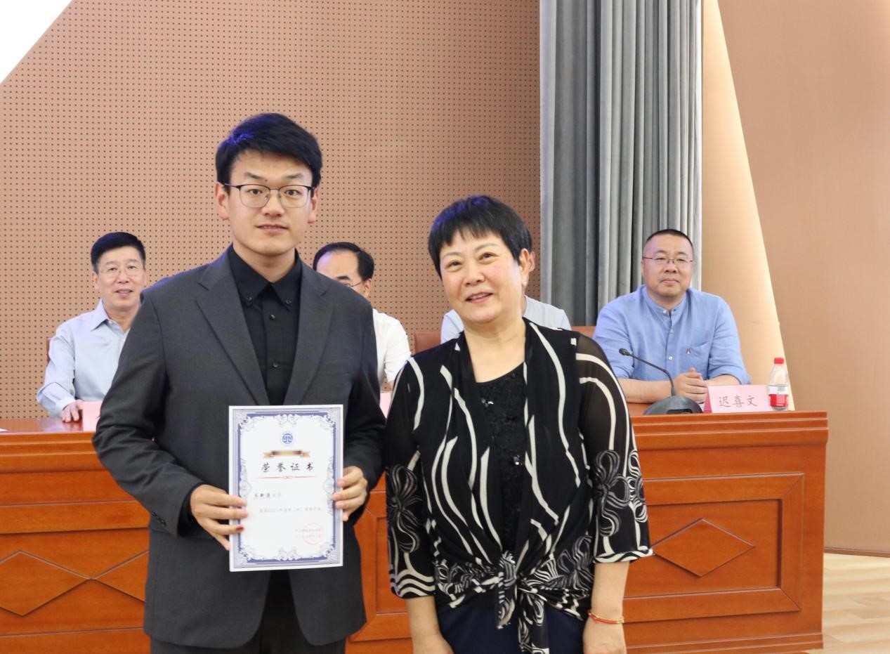 老师和校友为获奖的同学颁发荣誉证书,并合影留念。