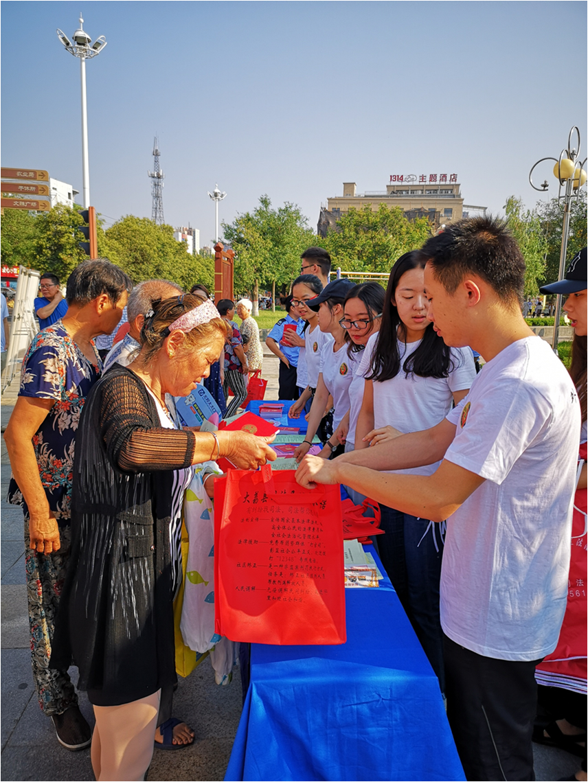 为了深入学习习近平新时代中国特色社会主义思想,发挥我院国际法专业优势,积极探索法学师生服务地方社会发展的有效途径,进一步树立青年师生四个意识和四个自信,培养青年学子的使命感与责任感,7月20日早8时许,在大荔县法律援助中心工作人员的指导和帮助下,实践团师生在大荔县文殊广场开展了法律援助和普法宣传活动,发放法律援助手册、法律援助宣传单,解答法律咨询。行人纷纷表示今后要多学习法律、法规,做知法、懂法、守法的好公民。