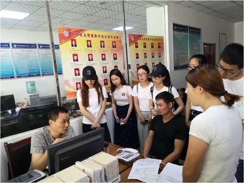 上午11时许,实践团师生来到大荔县行政服务中心政务大厅,观摩不动产登记窗口的业务流程,向工作人员询问不动产登记的相关法律问题。