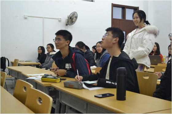 在活动最后的提问环节中,同学们对一些疑惑的问题积极举手提问,三位同学进行了耐心细致的解答,氛围轻松热烈。