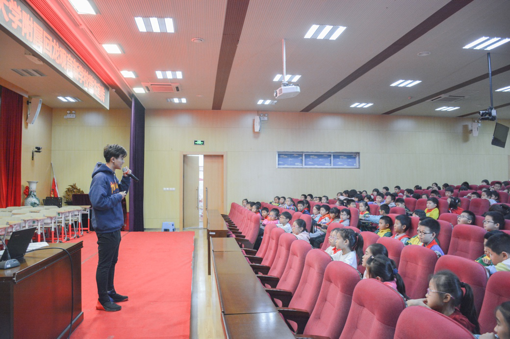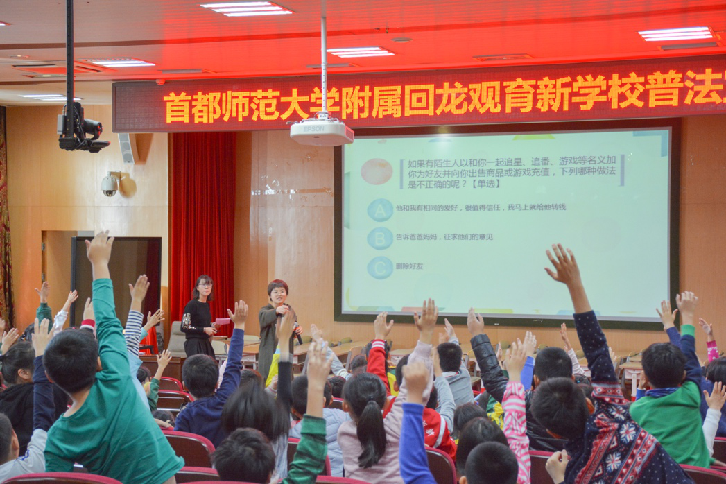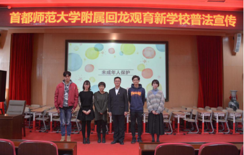 2018年11月16日,外交学院法律援助中心成员刘卓凡、余施语、陶一夫、郑雨飞、王巧唯五位同学来到首师大附属回龙观育新学校,给四年级的同学们开展了一场普法宣讲。