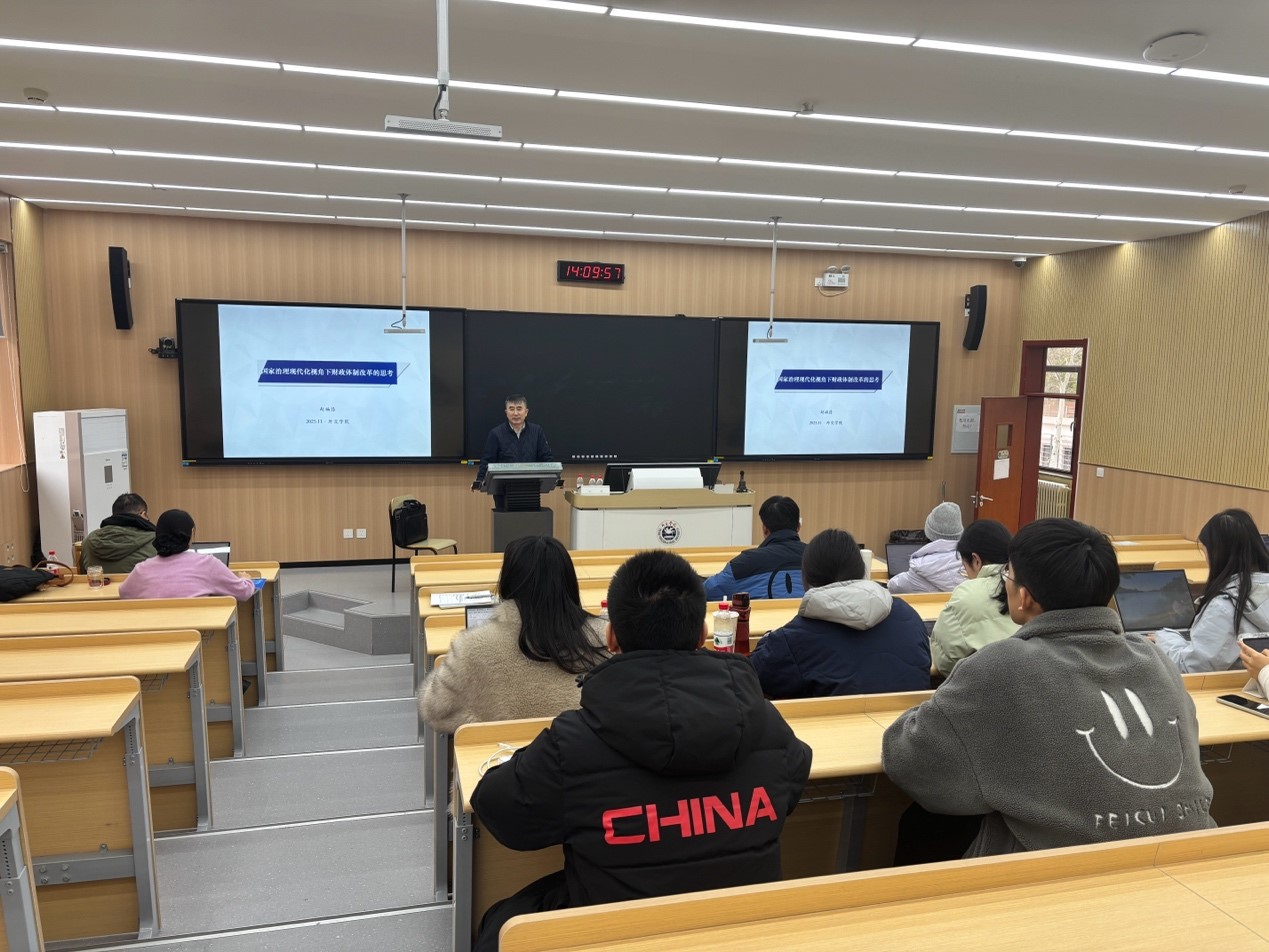 2025年11月26日下午国际法系在展览路校区420教室举办“国家治理现代化视角下财政体制改革的思考”主题讲座。讲座嘉宾为中国财政科学研究院财政与国家治理研究中心主任赵福昌研究员,国际法系吴园林老师主持,国际法系张春燕老师和谢肇煌老师评议。国际法系2025级法学硕士和法律硕士参加此次讲座。