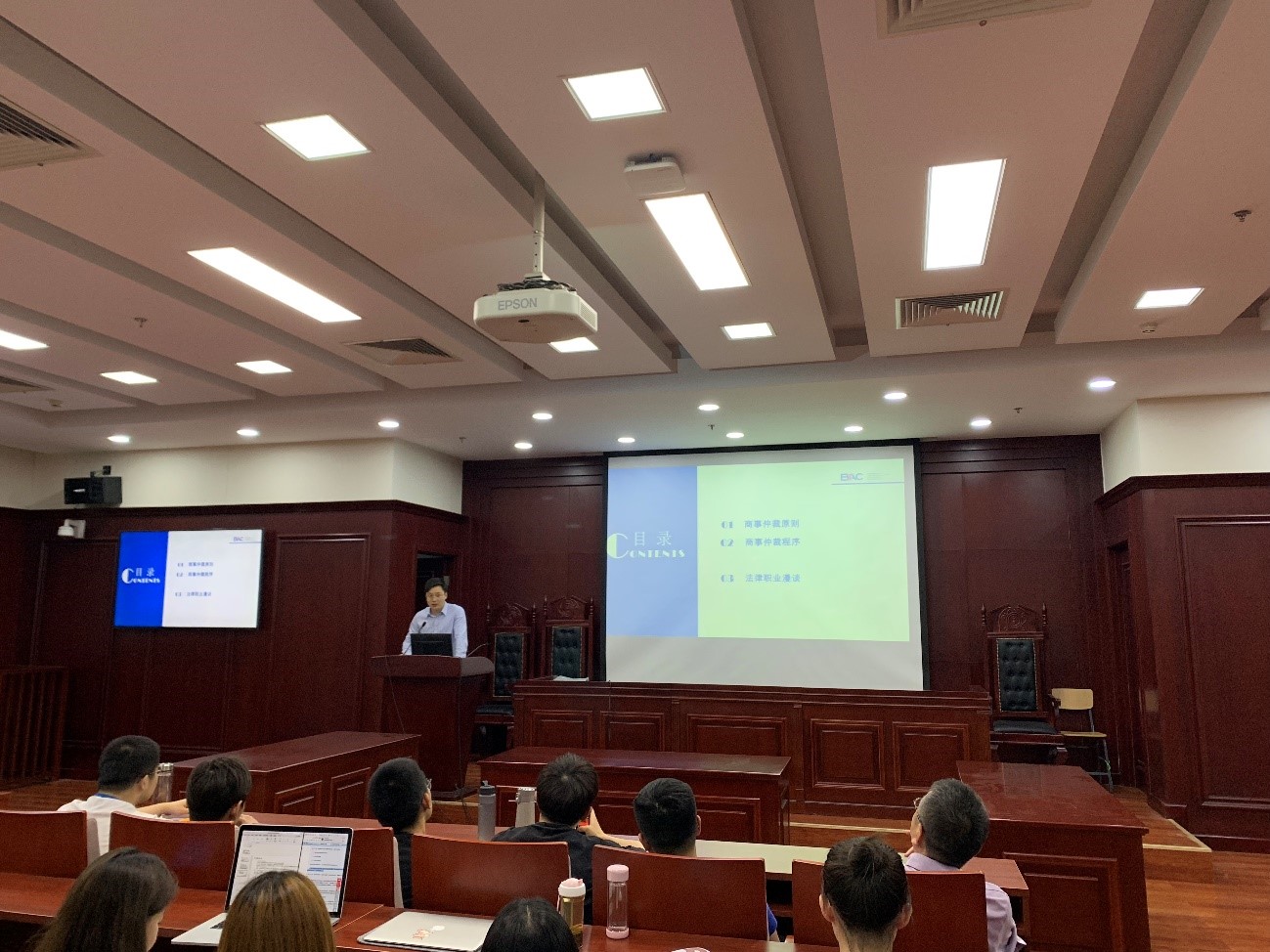 2019年5月22日晚7:00,北京仲裁委员会/北京国际仲裁中心(以下简称北仲)业务拓展处(国际案件处)顾问刘文鹏校友应邀在沙河校区模拟法庭做“商事仲裁实务及法律职业漫谈”讲座。此次讲座由国际法系孙积禄教授主持,李磊老师与部分本、硕士生同学共40余人参加了此次讲座。