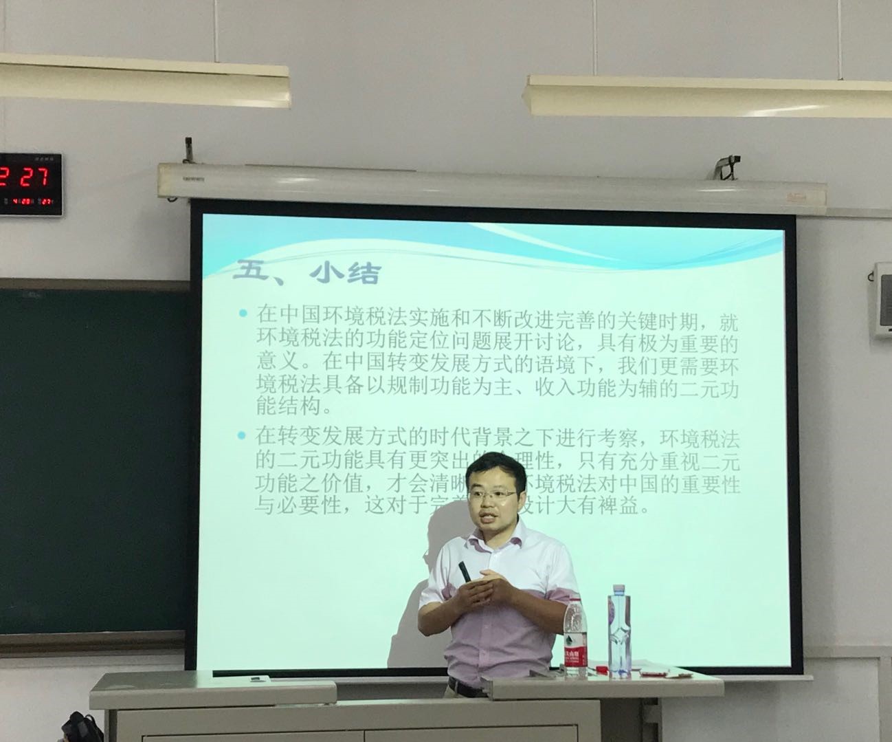 2019年6月2日下午,来自首都经济贸易大学的何锦前副教授应邀至我校沙河校区做专题讲座,主题为“环境税法的功能定位:国际视角与中国实践”。本次讲座是我系实验班的系列活动之一,由国际法系张春燕副教授主持,2016级实验班同学参加了此次活动。