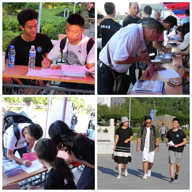 孙吉胜副院长、学生处王胜乾处长、迟喜文副处长来到迎新接待站慰问迎接新生的同学们,并与学生家长亲切交谈,询问新生情况。