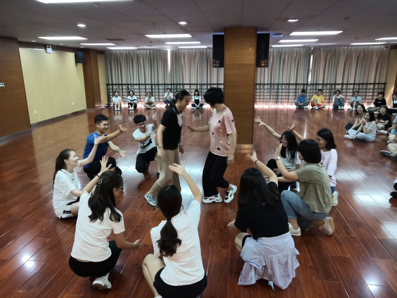 最后,同学们再一次手拉手围成一个圆圈,冯老师让大家把自己想象成海浪,自由的涌向中央或是退向边缘。现场欢笑不断,同学们也在其中收获了最纯真的友谊。