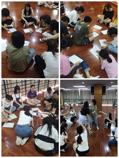 接着,冯老师把同学们分成六个小组,各小组的成员群策群力,共同完成一段编舞。舞蹈过后,同学们拿起画笔描绘刚结束的活动,纷纷在白纸上勾勒出心中的图景,于无声中感受美好的时光。