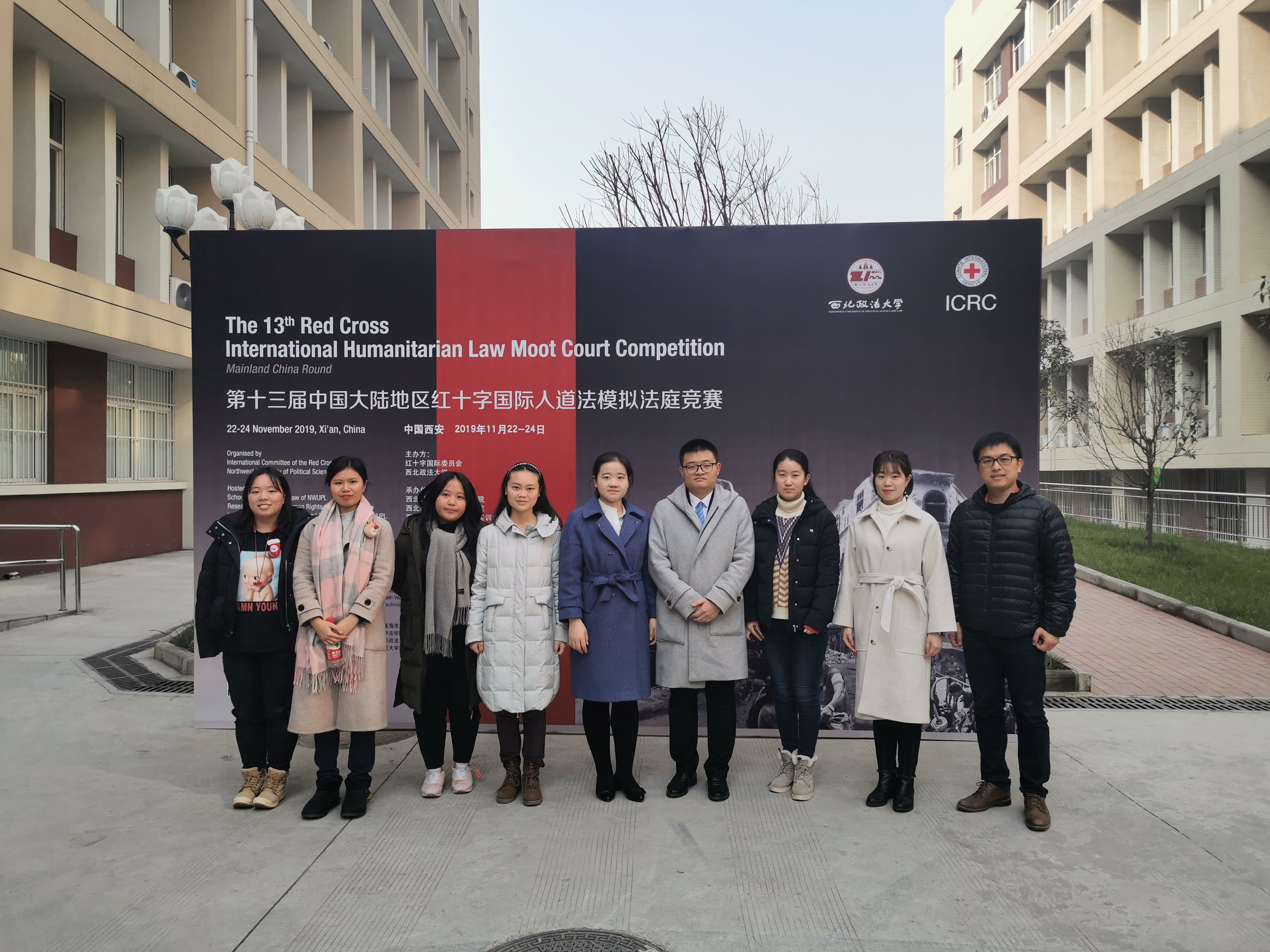 2019年11月22至24日,第十三届红十字国际人道法模拟法庭竞赛在西北政法大学举办。我院代表队由国际法系严文君老师担任指导教师,国际法系本科生杨睿智、董健宁为上场队员,赵子馨、赖峤竹、晏子然、颜雨晴、赵希雅、丁迪及外交学系本科生刘亦奇等7名同学为研究员。2016级本科生王淑菲、汪亚蓝担任顾问。经过激烈角逐,我院代表队获二等奖。
