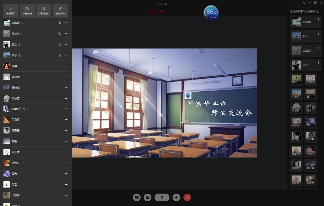 当前正值高校毕业生求职择业的关键时期,受新冠肺炎疫情影响,毕业生困难增多,毕业生的相关工作始终是国法全体教师的牵挂。在前一阶段精准摸排就业进展并制定我系就业工作方案后,为帮助学生解决就业、升学等过程中面临的实际困难,2020年4月18日下午,我系在线举办了毕业班师生交流会。会议由党总支书记李淑媛老师主持,系主任许军珂老师、教学副主任张华老师、国际私法及国际经济法教研室主任臧立老师、国际公法教研室主任王佳老师、基础法教研室主任潘皞宇老师、辅导员谢梦老师和国际法系2020届毕业班全体同学参加。