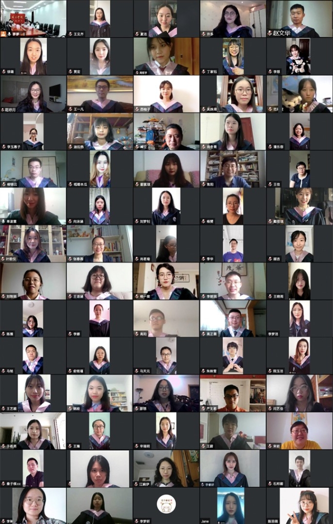 为让毕业生感受到母校的温暖,引导毕业生坚定理想信念,练就过硬本领,增进与母校的情感,延续国际法系团结友爱的传统,我系创新采用线上和线下相结合的方式,在展览路校区141会议室(主会场)和腾讯会议(分会场)共同为2020届本科毕业生举办了一场特殊的毕业典礼。典礼由国际法系党总支书记李淑媛老师主持,国际法系主任许军珂老师、教学副主任张华老师、基础法教研室主任潘皞宇老师、教学秘书李梦昕老师、国际法学会秘书张歆老师、辅导员谢梦老师在主会场参会,国际经济法及国际私法教研室主任臧立老师、国际公法教研室主任王佳老师以及张春燕老师、焦阳老师、严文君老师、杨赟老师、宋岩老师、季华老师和全体2020届本科生在线上参加。