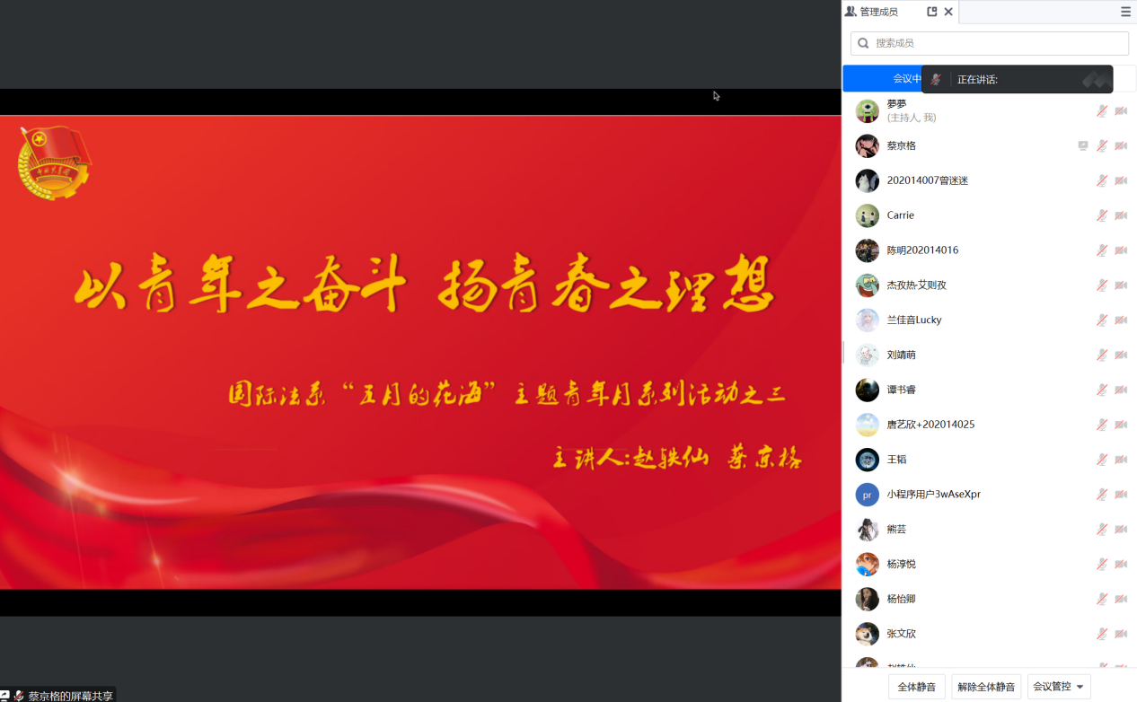 本次讲座圆满结束,通过学姐们的讲授,同学们对大学生涯的选择有了更加清晰的认识和规划。希望同学们外交青年学子的初心使命,坚定理想信念,树立远大志向,扎根祖国大地,将青春梦和中国梦联系在一起,在祖国需要的地方建功立业,书写人生华章。