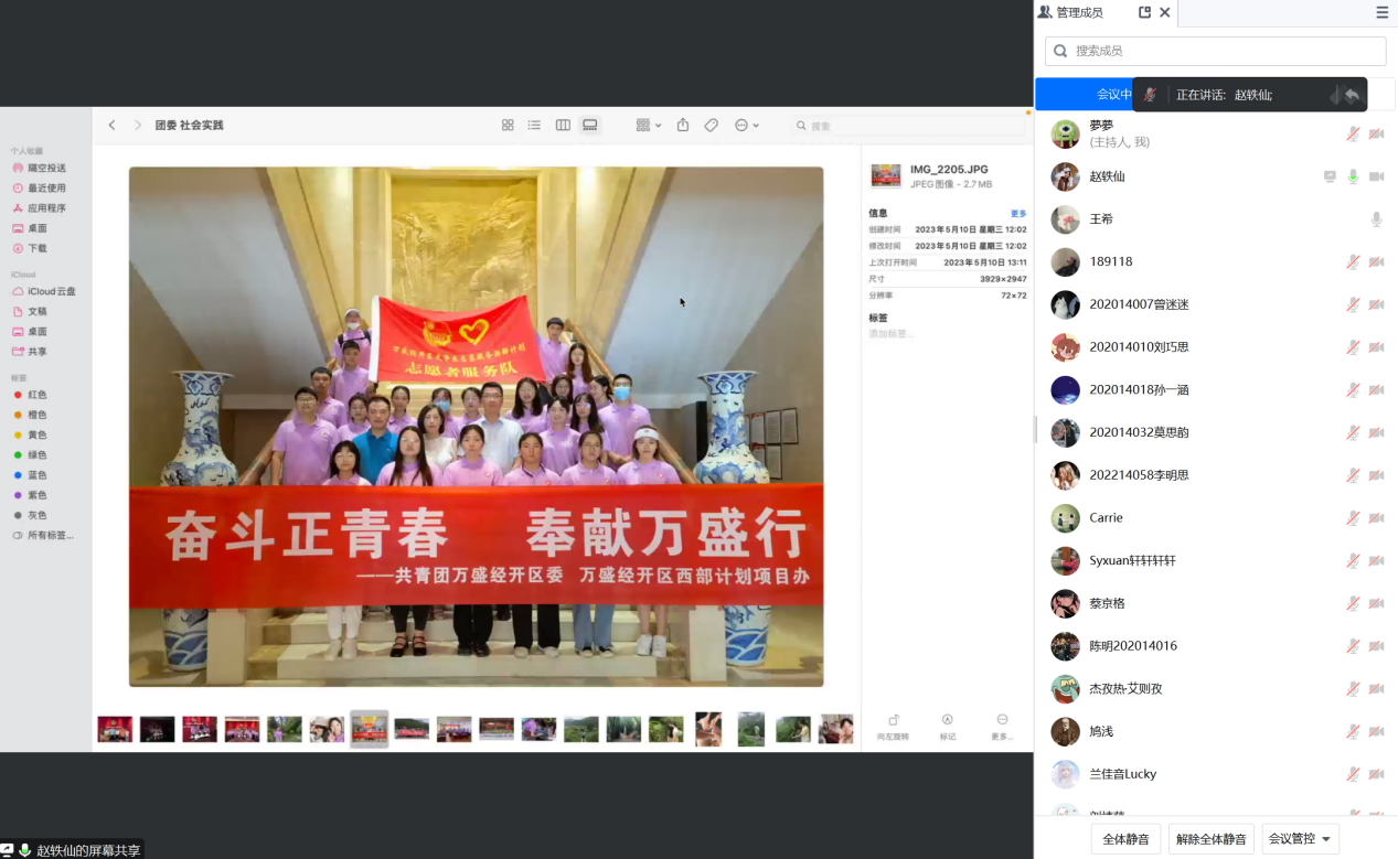 2023年5月14日上午,我系举办了“五月的花海”青年月的第三场活动——“以青年之奋斗 扬青春之理想”主题讲座。本次讲座由辅导员谢梦老师主持,邀请了我系2017级支教保研的赵轶仙同学和我系2019年征兵入伍并光荣退伍的蔡京格同学,结合自己奉献祖国的个人经历与同学们进行了深入交流。
