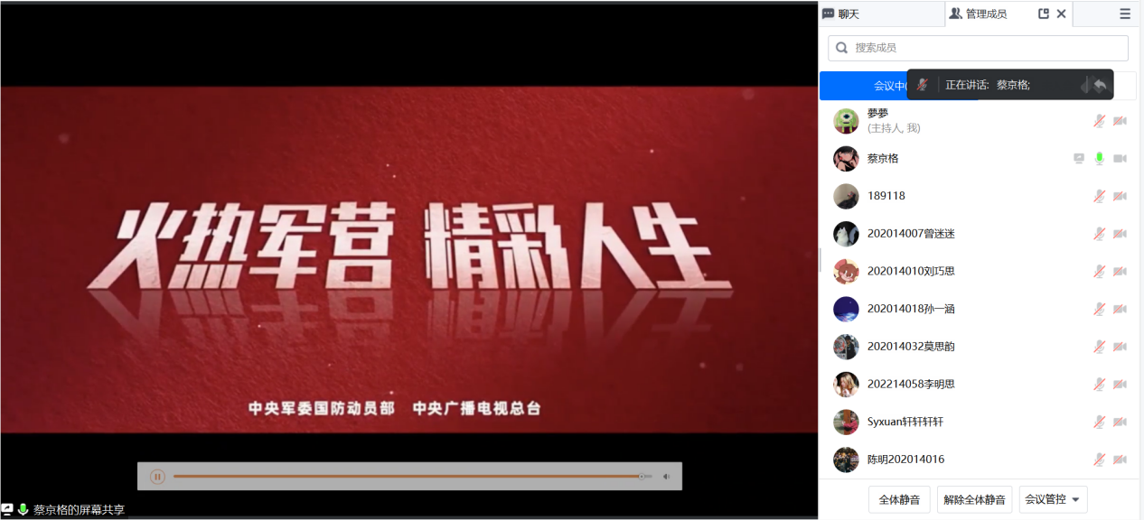 蔡京格同学是我系2018级本科生,2019年9月光荣应征入伍,新兵连获“神枪手”称号,曾保障实兵对抗演习,协助负责旅军事职业教育工作,参加多次文艺汇演,任旅队新闻报道员,在各级媒体发表新闻稿80余篇。蔡京格同学分享了参军入伍的初心、入伍前的身心准备和相关政策、部队训练和生活等,她鼓励同学们站在人生选择的十字路口上,坚定理想信念,心怀报国之志,在军营中磨练意志品质,创造精彩人生。
