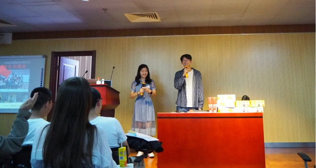随后,学长学姐播放了暑期精心制作的PPT,一一介绍对应学号的新生。
