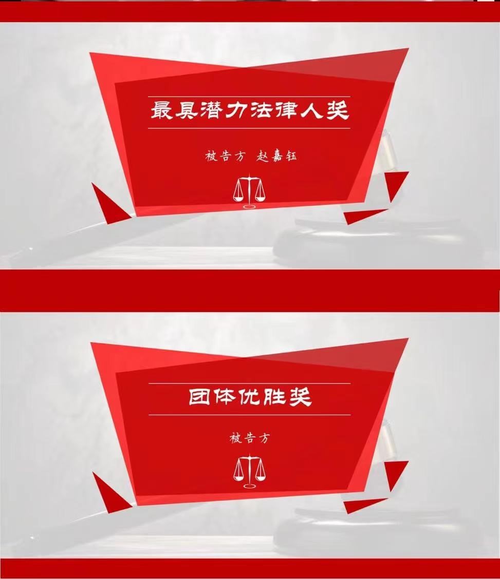 最终,被告方获得竞赛团体优胜奖,被告方赵嘉钰同学获得最具潜力法律人奖。