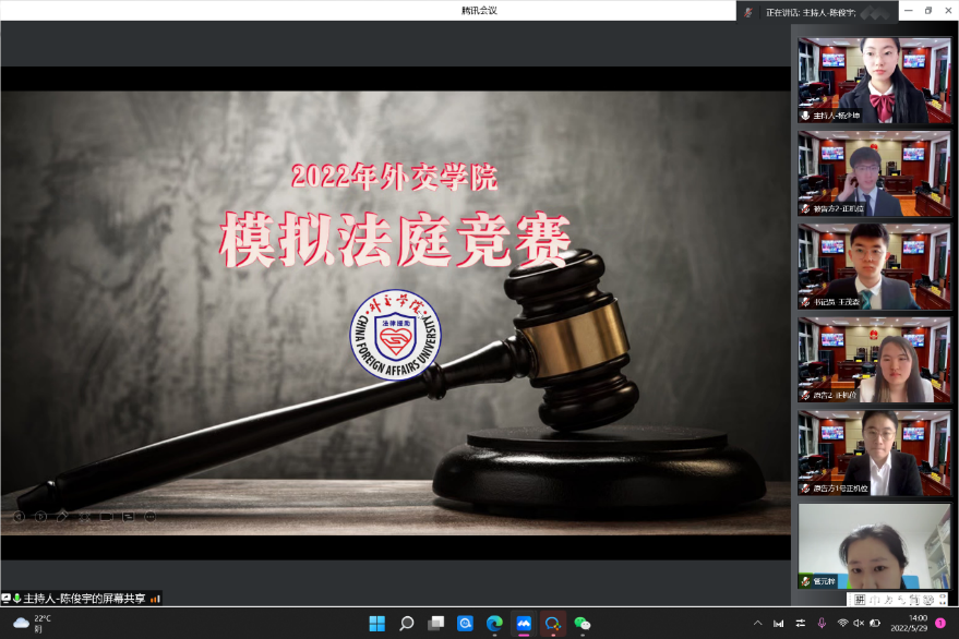 2022年5月29日下午,2022年外交学院模拟法庭竞赛在线上开展。