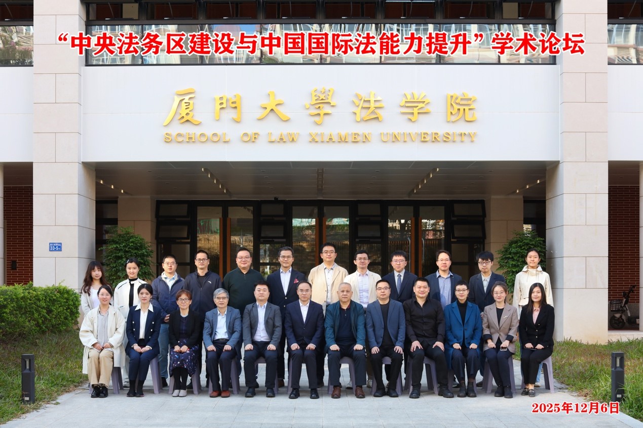 2025年12月6日,厦门大学法学院召开“中央法务区建设与中国国际法能力提升”学术论坛。来自北京大学、中国人民大学、吉林大学、中山大学、同济大学、华东政法大学、外交学院、澳门大学、上海社科院、厦门社科联、厦门市委党校等高校和科研机构的学者参加论坛。