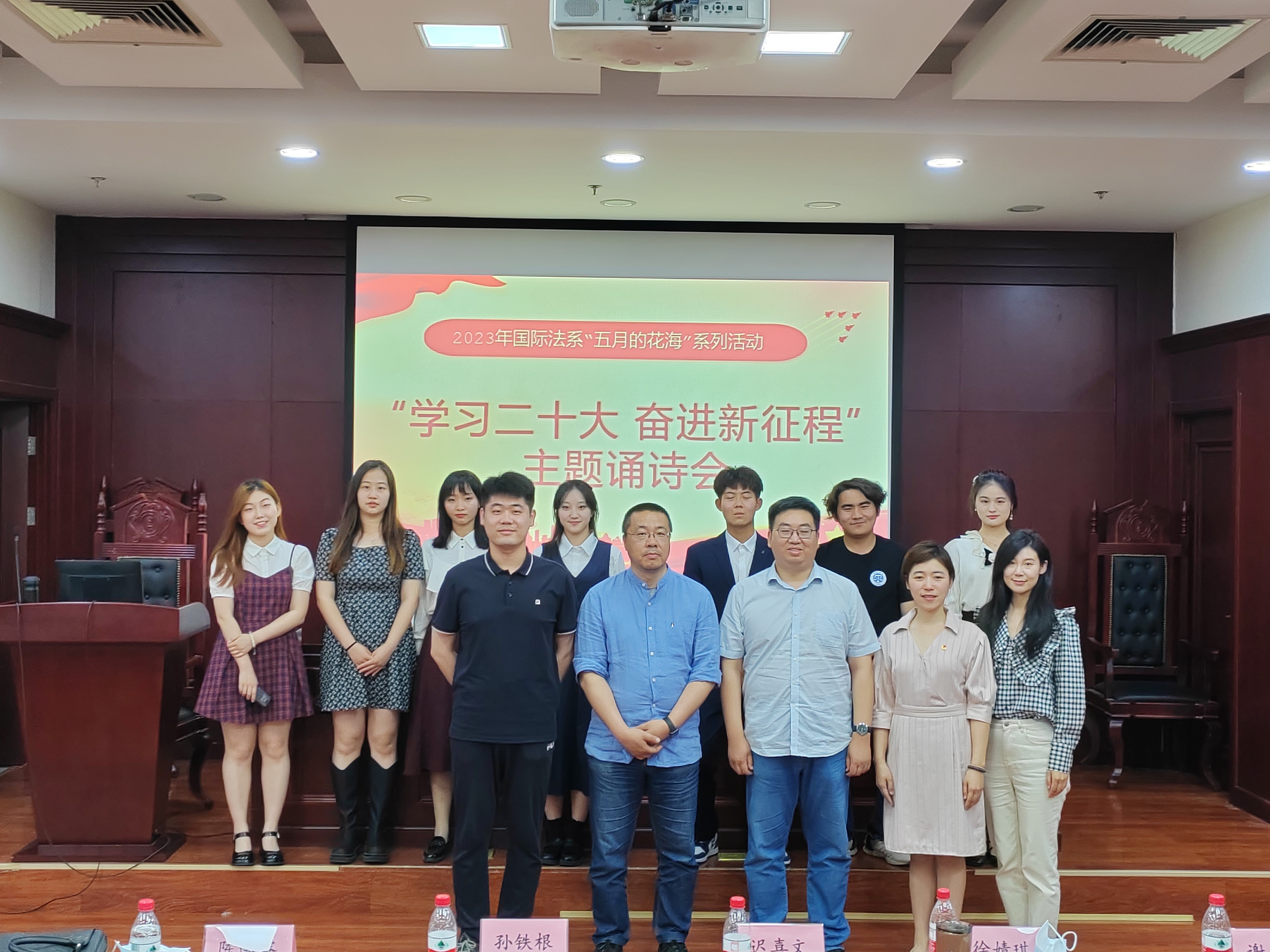 为引导我系青年全面深入学习宣传贯彻党的二十大精神,坚持不懈用习近平新时代中国特色社会主义思想和习近平外交思想凝心铸魂,让青年人讲好中国故事,汇聚青春力量,国际法系于2023年5月24日在沙河校区模拟法庭成功开展了“学习二十大 奋进新征程”主题诵诗会。