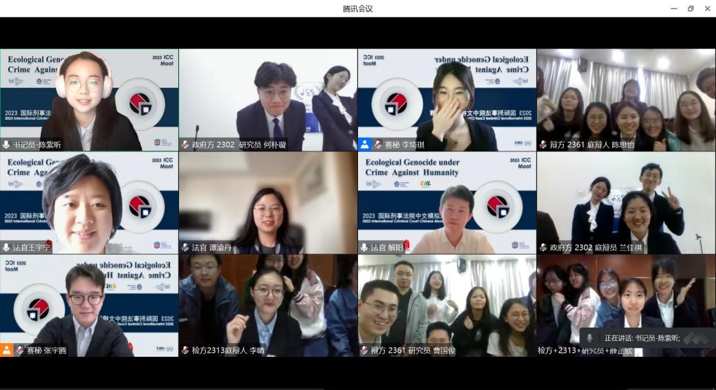 本次竞赛由由国际刑事法院、国际法促进中心等提供支持,中国国际刑法青年学者联盟等主办。2023年ICC中文赛共有清华大学、上海交通大学、华东政法大学、山东大学等来自全国各地的85支高校代表队参加,参赛队伍数量再创历史新高。经过书状评比后,有45支代表队进入了正赛(线上庭辩)环节。本届赛题聚焦于危害人类罪的认定、生态灭绝、民族自决等国际法热点问题,关切人类公平与正义。