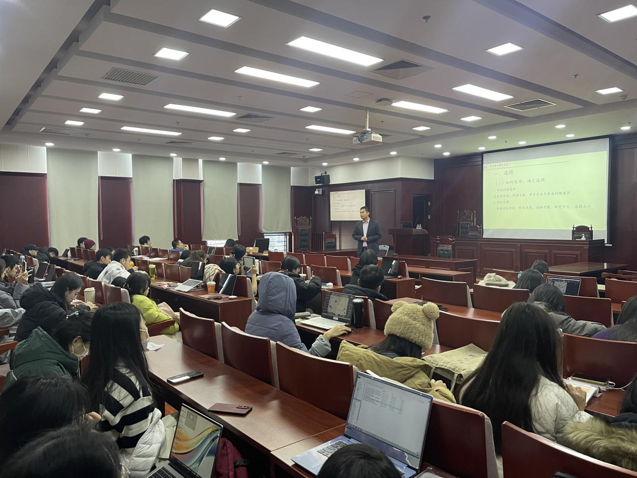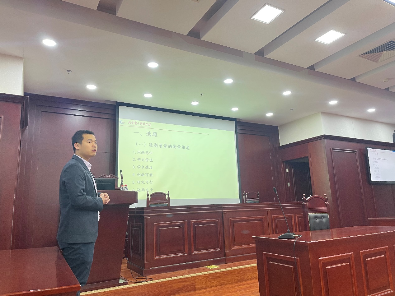 为切实提高同学们的法学思辨能力和论文写作能力,国际法系于2023年11月24日上午在沙河校区模拟法庭举办了“法学论文写作”主题讲座。讲座嘉宾为北京电子科技学院管理系政法教研室主任、《行政法学研究》责任编辑王玎副教授,讲座由国际法系韩笑老师主持,法学专业硕士研究生参加。