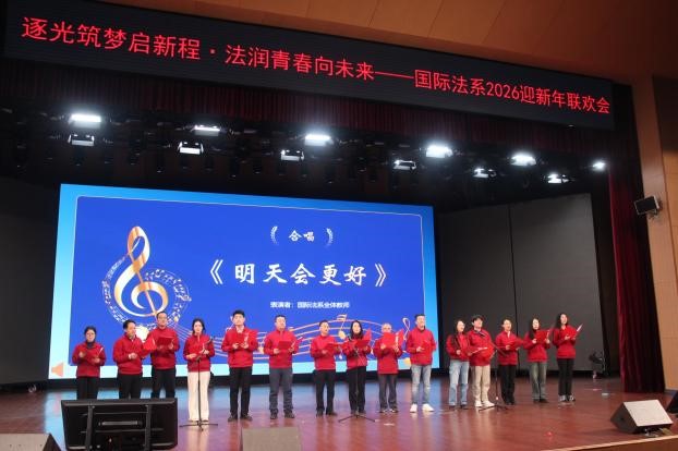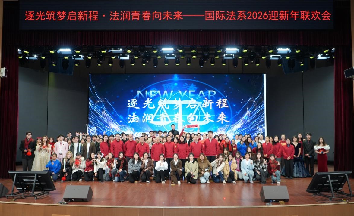 2025年12月20日下午,国际法系在沙河校区礼堂隆重举办了“逐光筑梦启新程,法润青春向未来——国际法系2026迎新年联欢会”。国际法系主任张华、系党总支书记王胜乾以及国际法系近20位老师出席本次联欢会,与同学们共迎新年。
