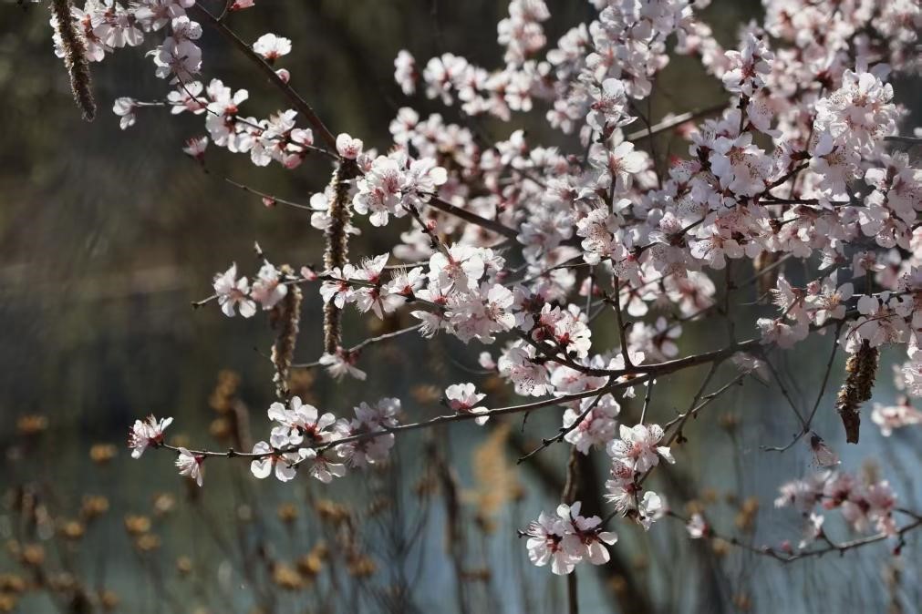 粉嫩杏花缀满枝头,在阳光下闪烁微光。