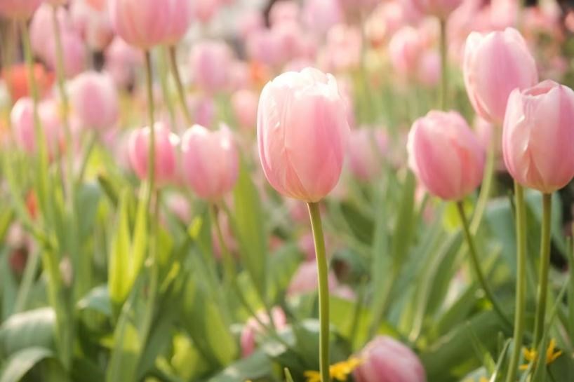 郁金香低垂颈项,粉瓣如绡,每一道细腻的纹理都浸染着春的涟漪。“阳春布德泽,万物生光辉。”
