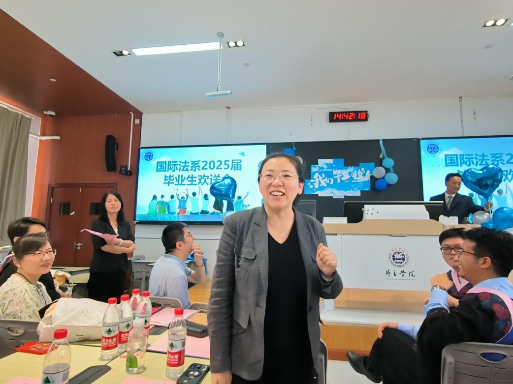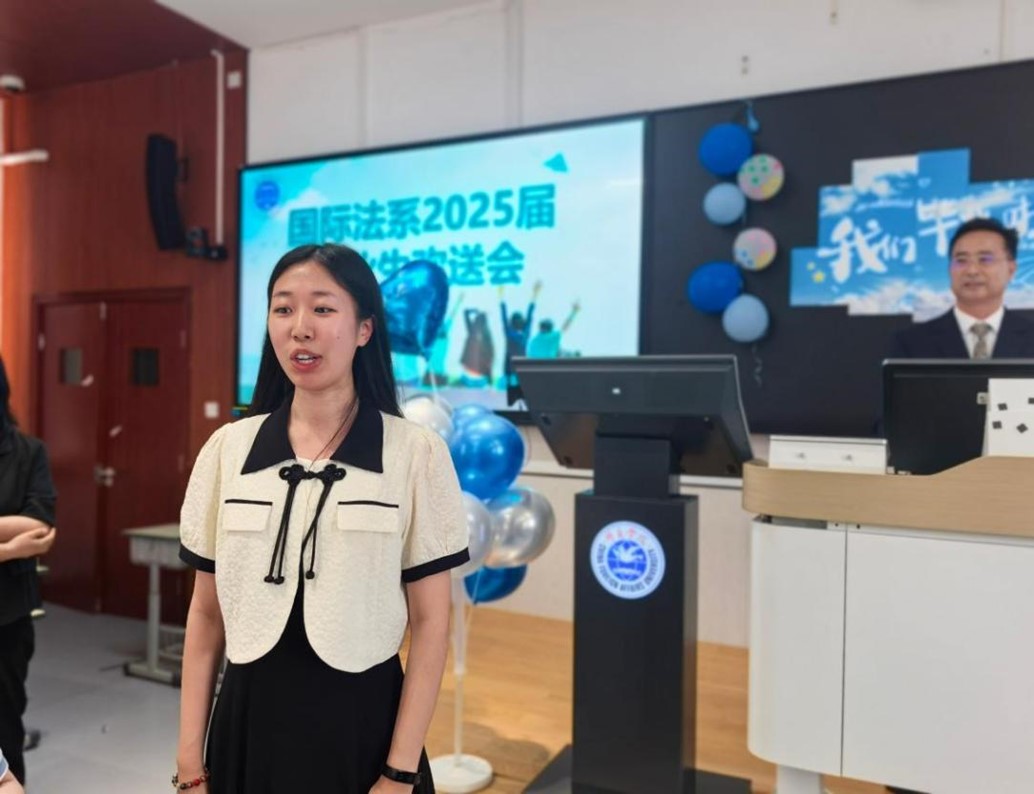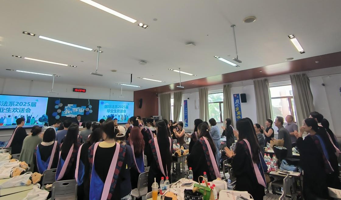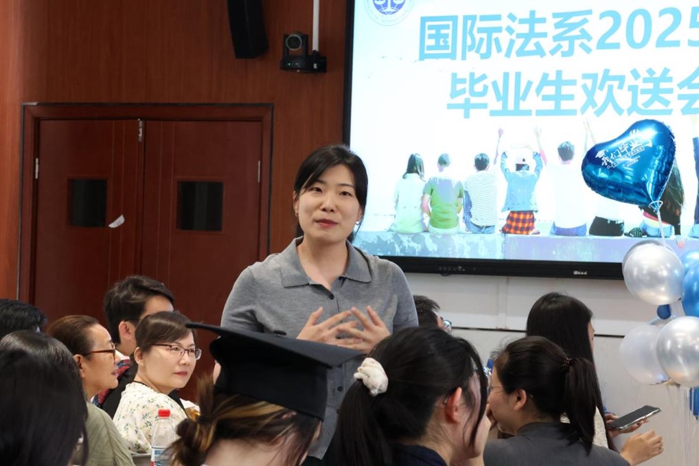 2025年6月25日下午,外交学院国际法系2025届毕业生欢送会在展览路校区423教室举行。国际法系教师代表焦阳老师、严文君老师、谢梦老师、杨赟老师、韩笑老师、郭欣彤老师、毕业生家长亲友们,以及2025届全体毕业生参加了本次欢送会。国际法系主任张华老师出席并致辞,系党总支书记王胜乾老师主持。