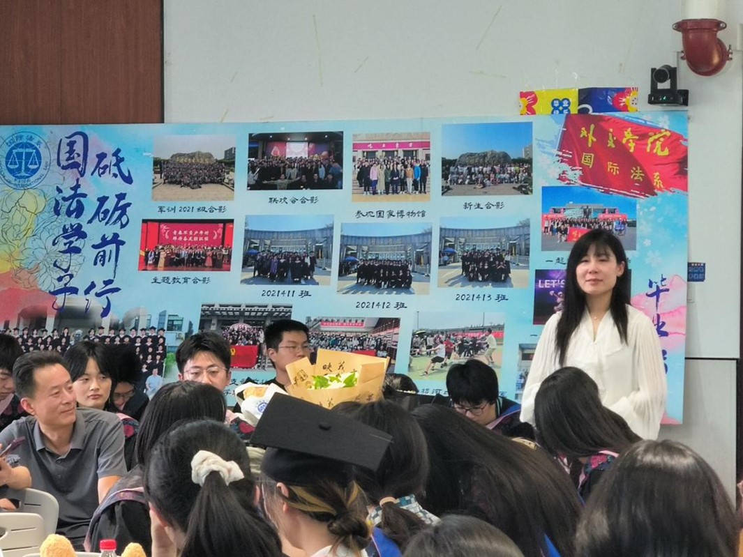 国际法系党总支书记王胜乾老师寄语全体毕业生们,毕业是新征程、新起点,希望大家牢记校训,传承国法精神,维护母校声誉,捍卫国家利益,在国际法治的舞台上彰显中国青年的智慧与担当,在祖国大地奋力书写为中国式现代化挺膺担当的青春篇章。他诚挚邀请全体毕业生们在9月份返校参加70周校庆、30周年系庆等重要纪念活动。