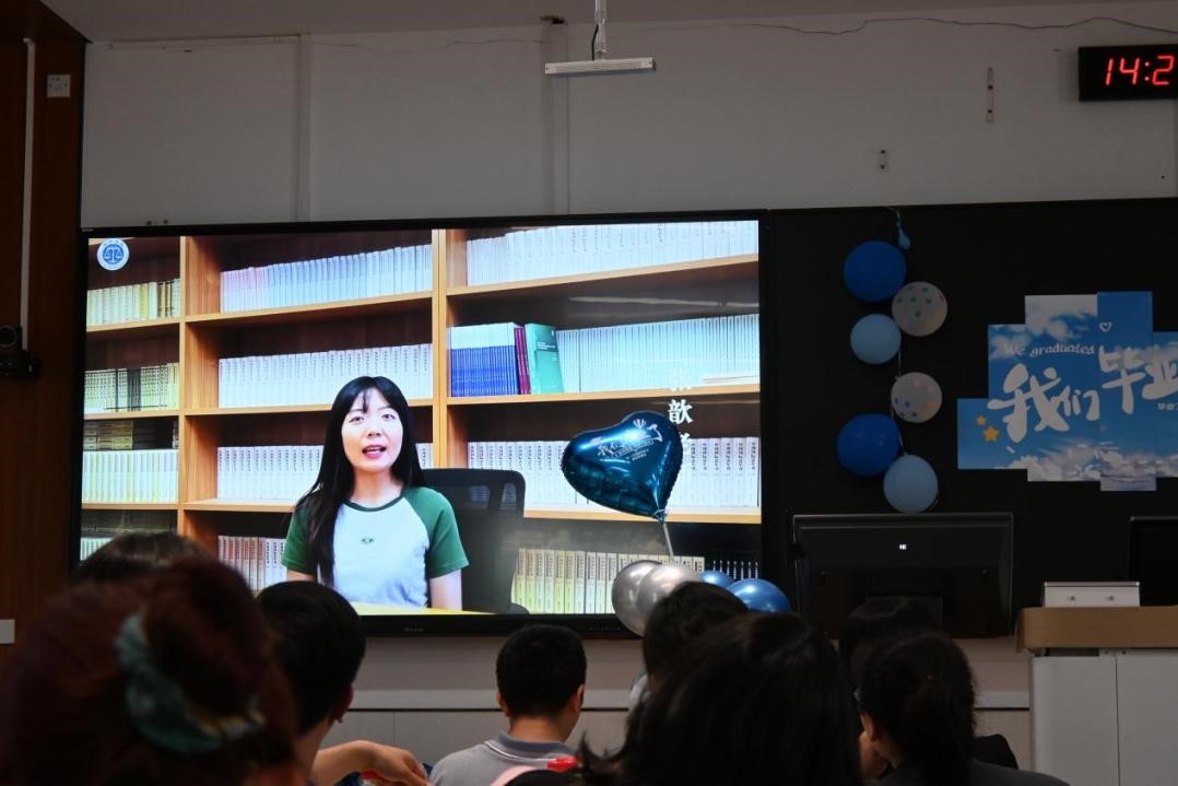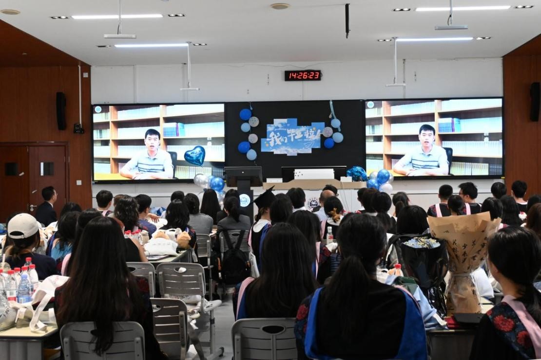 欢送会在温馨的视频回顾中拉开帷幕。屏幕上,一张张照片、一段段视频,记录了毕业生们从入学时的青涩懵懂到如今的成熟自信,带领大家重温四载春秋里晨夕相伴的温暖时光。
