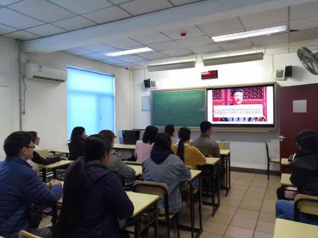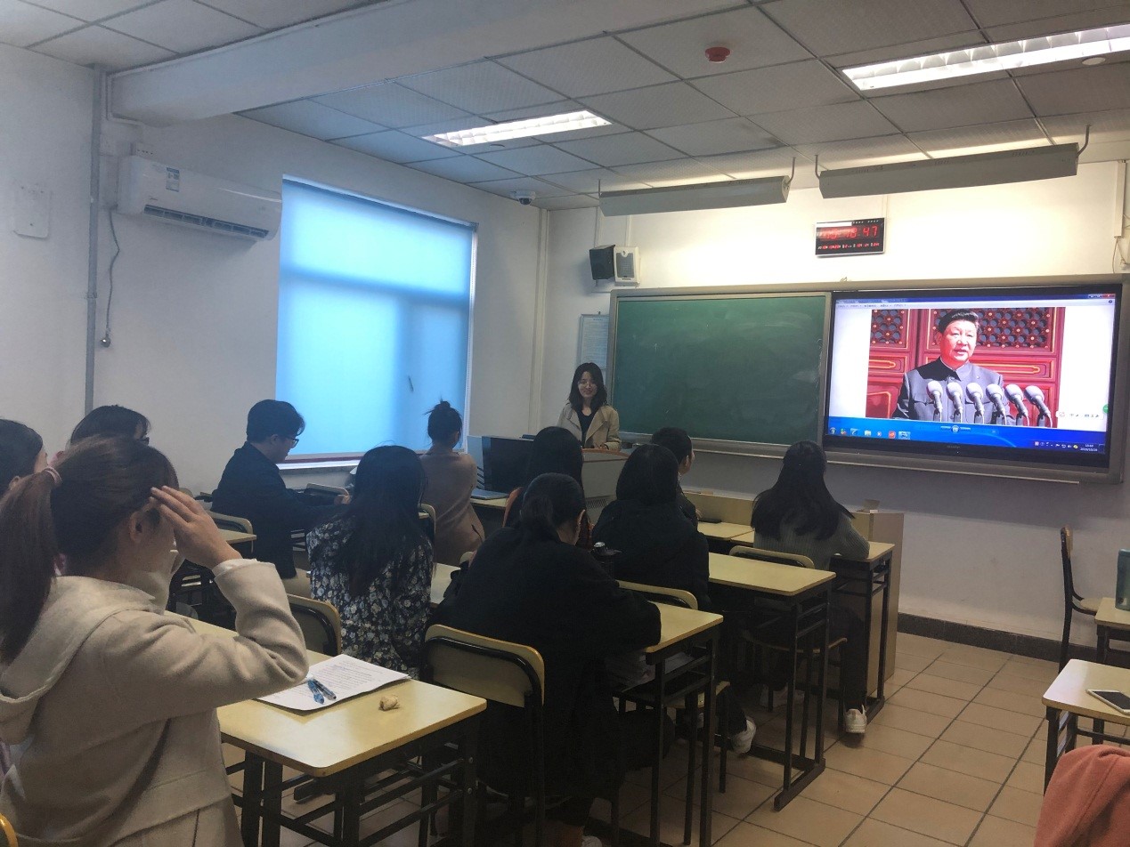 同学们集中学习了习近平总书记在庆祝中华人民共和国成立70周年大会上的重要讲话,并观看了开国大典原始影像资料。