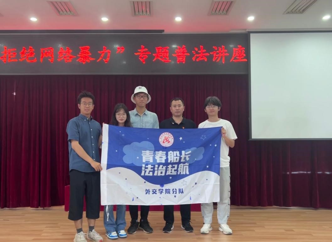 2023年5月22日,外交学院法律援助中心的黄柯文和李可欣同学在盛捷、陈若渝、王茂森三位学长学姐的指导与带领下,以“拒绝网络暴力”为主题,为北京市昌平区第五学校的同学们开展了普法活动。